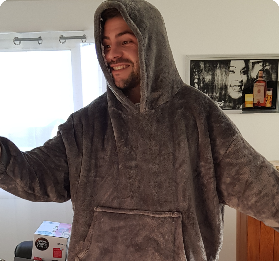 Avec des manches extra-larges, une capuche chaude géante et une poche avant spacieuse, les possibilités sont infinies pour ne plus avoir à bouger du canapé !